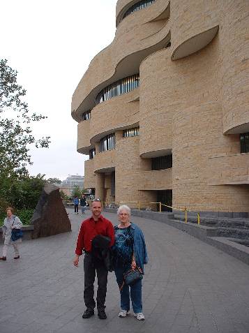 | The first thing we did in D.C. was to park in Union Station and walk over to the back of the capitol building. Next we walked down to the Native American Smithsonian, then the Air & Space Museum. We rode the Metro then to China town where Joan had her first sushi (a Dragon Roll). Later we drove around to see the White House, Washington Monument, Lincoln Memorial, and the World War II memorial. We were only able to see those from the car though because most places were blocked off for the Million More March on Washington that was to happen on Saturday. | ||||||||||||||||